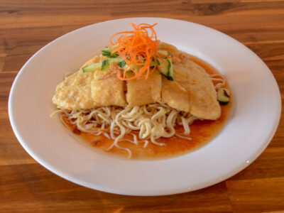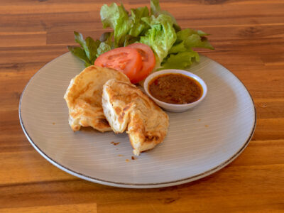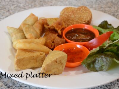 Entree Mixed Platter Mixed of tofu, tempe, chicken fried wontons, tempura squid rings, vegies spring rolls, vegies samosas served with sweet chilli and peanut satay sauce $13.50 Vegies Spring Roll Mini vegies spring rolls served with sweet chili $6.90 Squid Ring crispy deep fried tempura squid rings served with sweet chili $8.50 Chicken Fried Wonton Deep fried crispy chicken fried wonton served with sweet chili $7.50 Fried Tempe Deep fried fermented soya beans cake served with peanut satay sauce $6.90 Fried Tofu Deep fried tofu served with peanut satay sauce $6.90 Pempek/ Fish cake Deep fried fish cake served with egg noodles and tamarind sauce $14.00 Roti Parata Two pieces Roti parata served with curry sauce $6.90