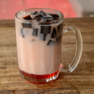 Vegetables, beef, tofu, egg in coconut milk soup served with tea tarik, coffee or tea