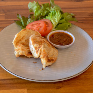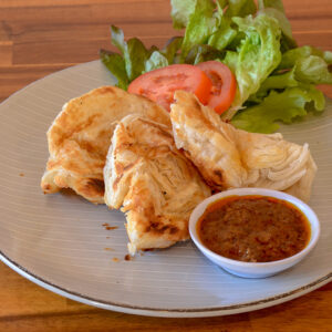 3 pieces parata served with curry sauce served with tea tarik, coffee or tea
