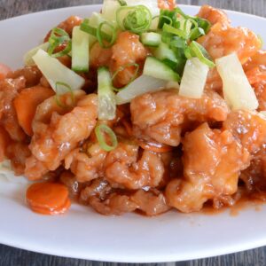 Deep fried battered chicken coated with our own sweet sour plum sauce