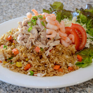 Fried Rice with Chicken , Salted Fish and seasonal mixed vegetable